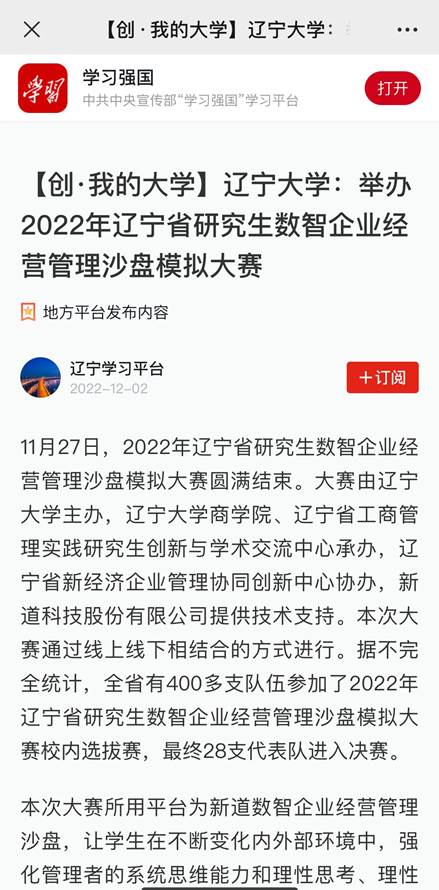 星空XK体育承办的2022年辽宁省研究生数智企业经营管理沙盘模拟大赛报道荣登“学习强国”平台。