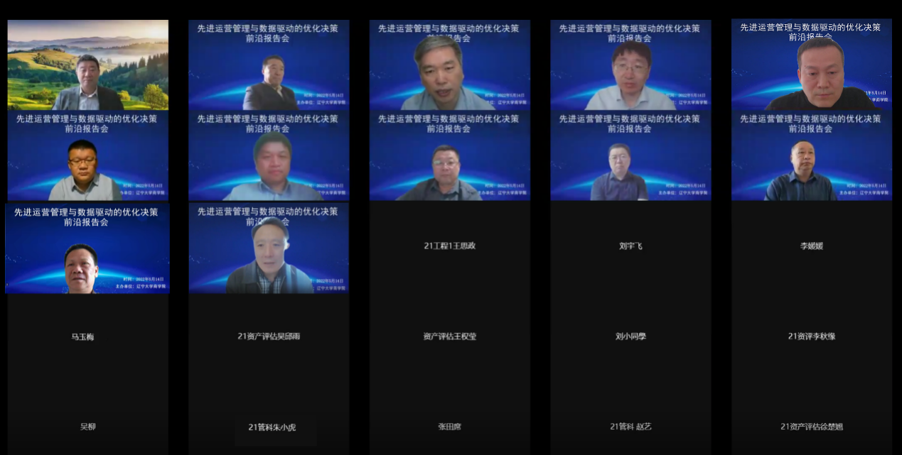 2022年5月14日,由星空XK体育主办的“先进运营管理与数据驱动的优化决策前沿报告会”通过腾讯会议在线上召开。此次会议邀请了国家级人才、教育部创新团队负责人、国家自然科学基金委创新研究群体负责人、辽宁省管理科学与工程专业教指委主任委员浙江大学管理学院胡祥培教授,国家级人才、国家自然科学基金委创新研究群体负责人东北财经大学唐加福教授,建设部工程管理专业评估委员会委员、《建筑经济》和《工程管理学报》编委会委员大连理工大学李忠富教授,国家级人才、交通运输部青年科技英才大连海事大学曾庆成教授,中国科学院管理决策与信息系统重点实验室副主任房勇研究员,国家级人才、国家自然科学基金重点项目负责人、北京化工大学李想教授等六位管理科学与工程领域的著名专家,针对多学科交叉融合、数据驱动的工程优化、智慧运营与智慧决策等方面的研究内容进行报告。星空XK体育院长张广胜教授、管理科学与工程学科负责人郭燕青教授出席会议并在会上致辞,星空XK体育副院长韩亮亮教授参加会议并作总结发言。李延来教授、曲赜胜副教授和李铭洋教授主持了此次会议。
