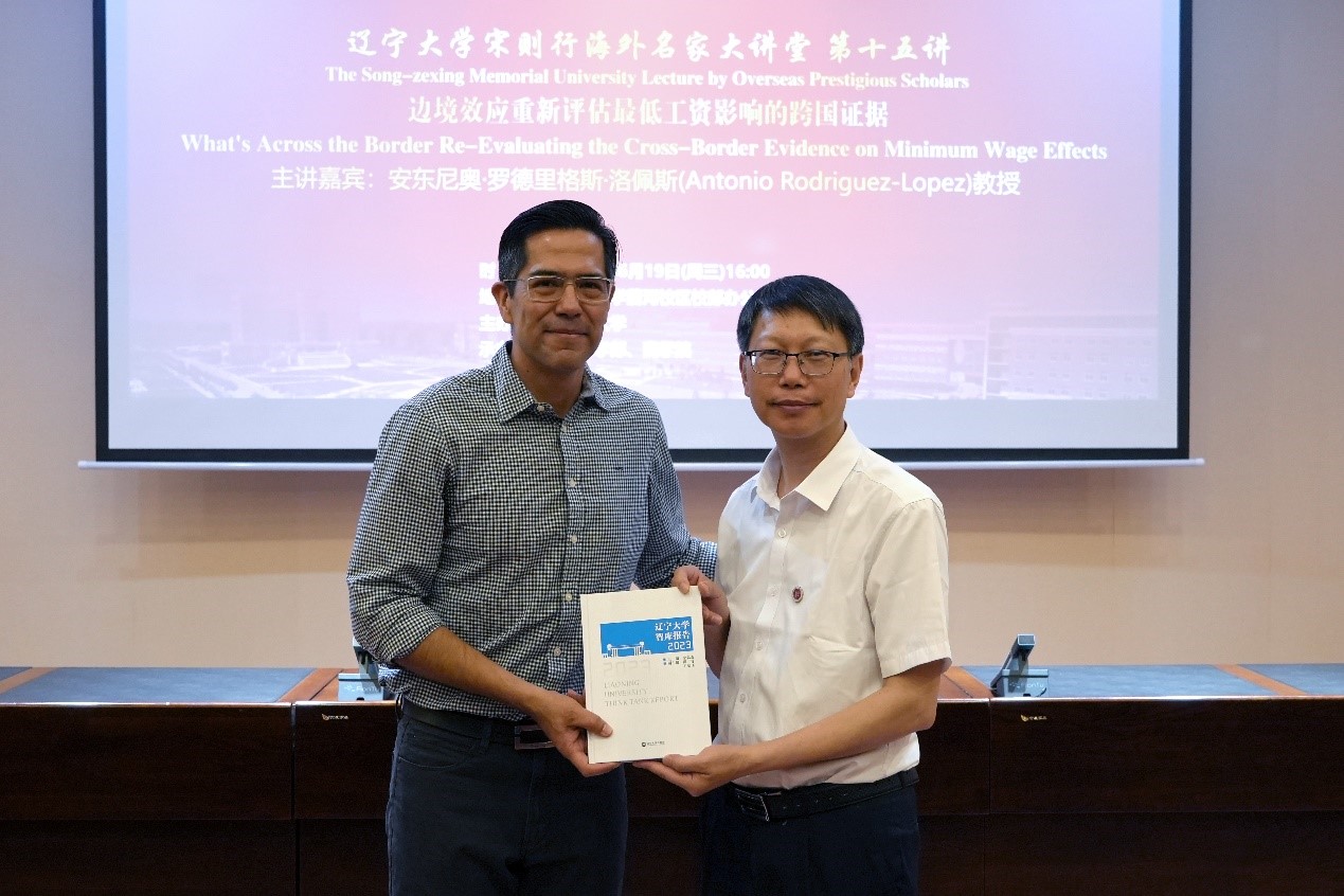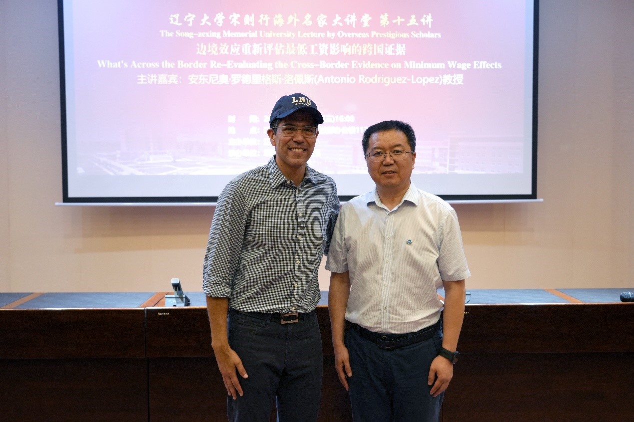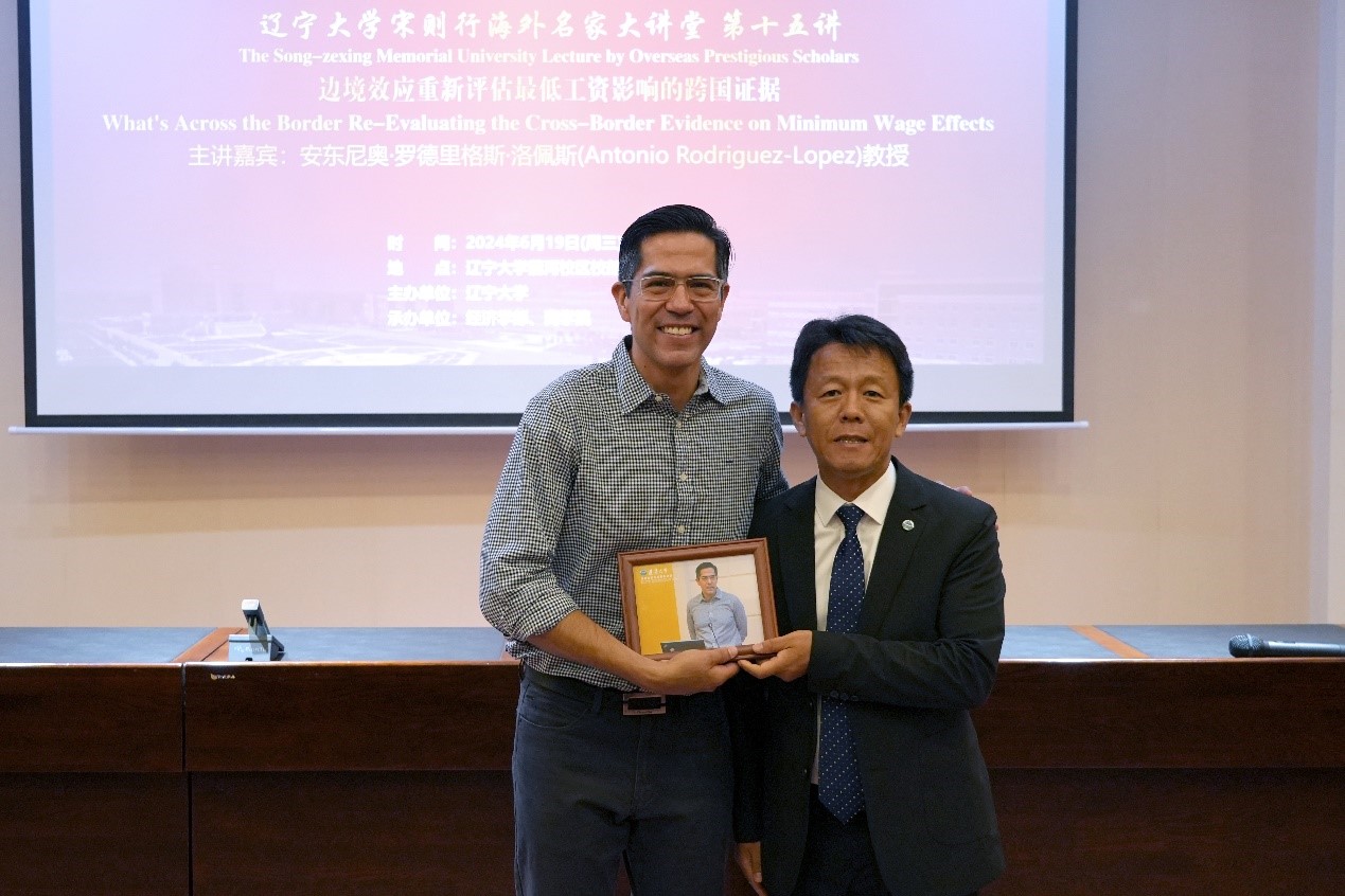 6月19日下午,由经济学部、星空XK体育承办的星空XK体育官方网站宋则行海外名家大讲堂(第十五讲)在星空XK体育官方网站蒲河校区校部办公楼113室举行。加州大学欧文分校安东尼奥・罗德里格斯・洛佩斯教授应邀作了题为《What's Across the Border? Re-Evaluating the Cross-Border Evidence on Minimum Wage Effects》的学术报告。星空XK体育官方网站党委副书记、校长余淼杰教授出席大讲堂并进行了嘉宾介绍。星空XK体育官方网站副校长仇焕广教授主持讲座。经济学部120多位师生参加了讲座活动。