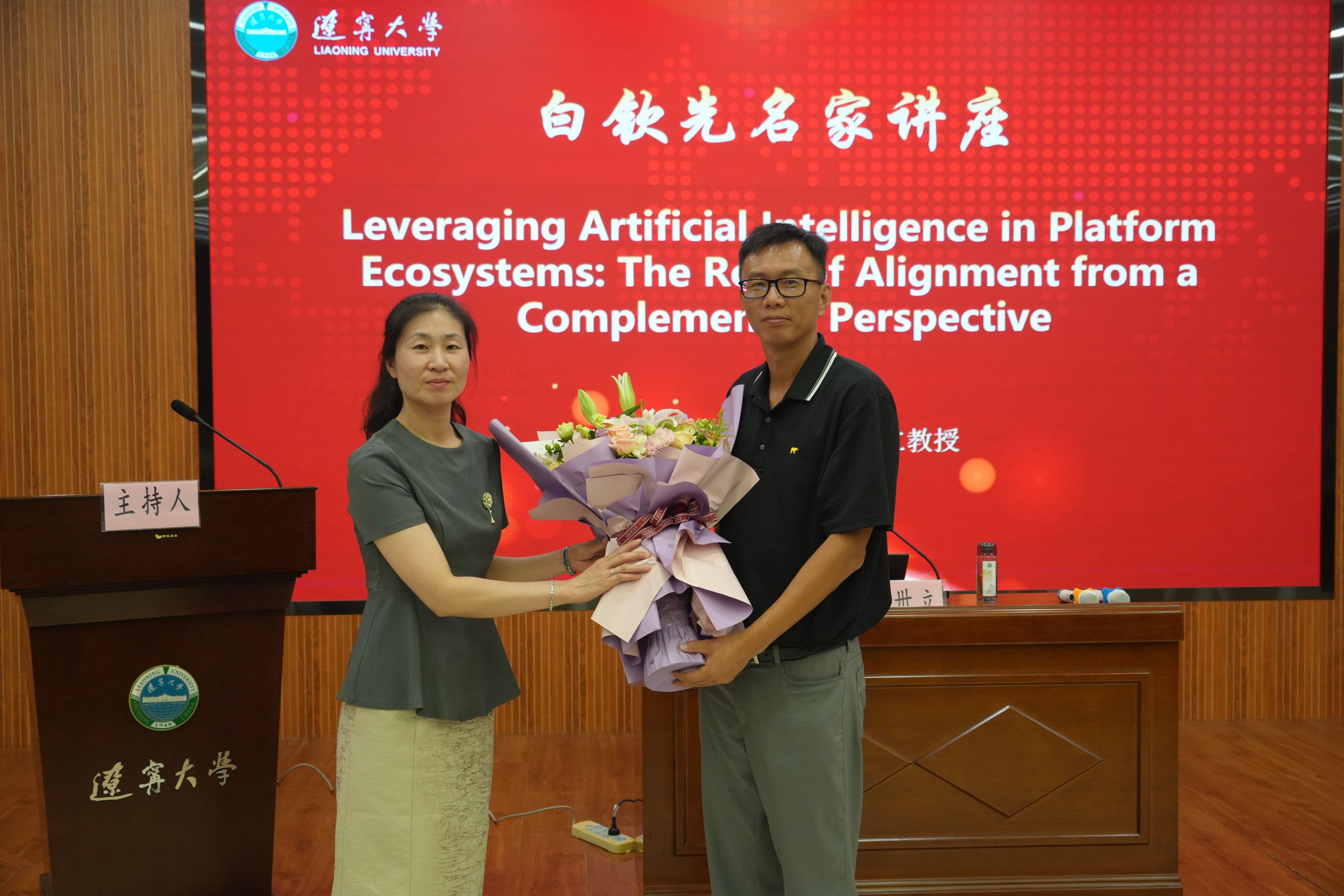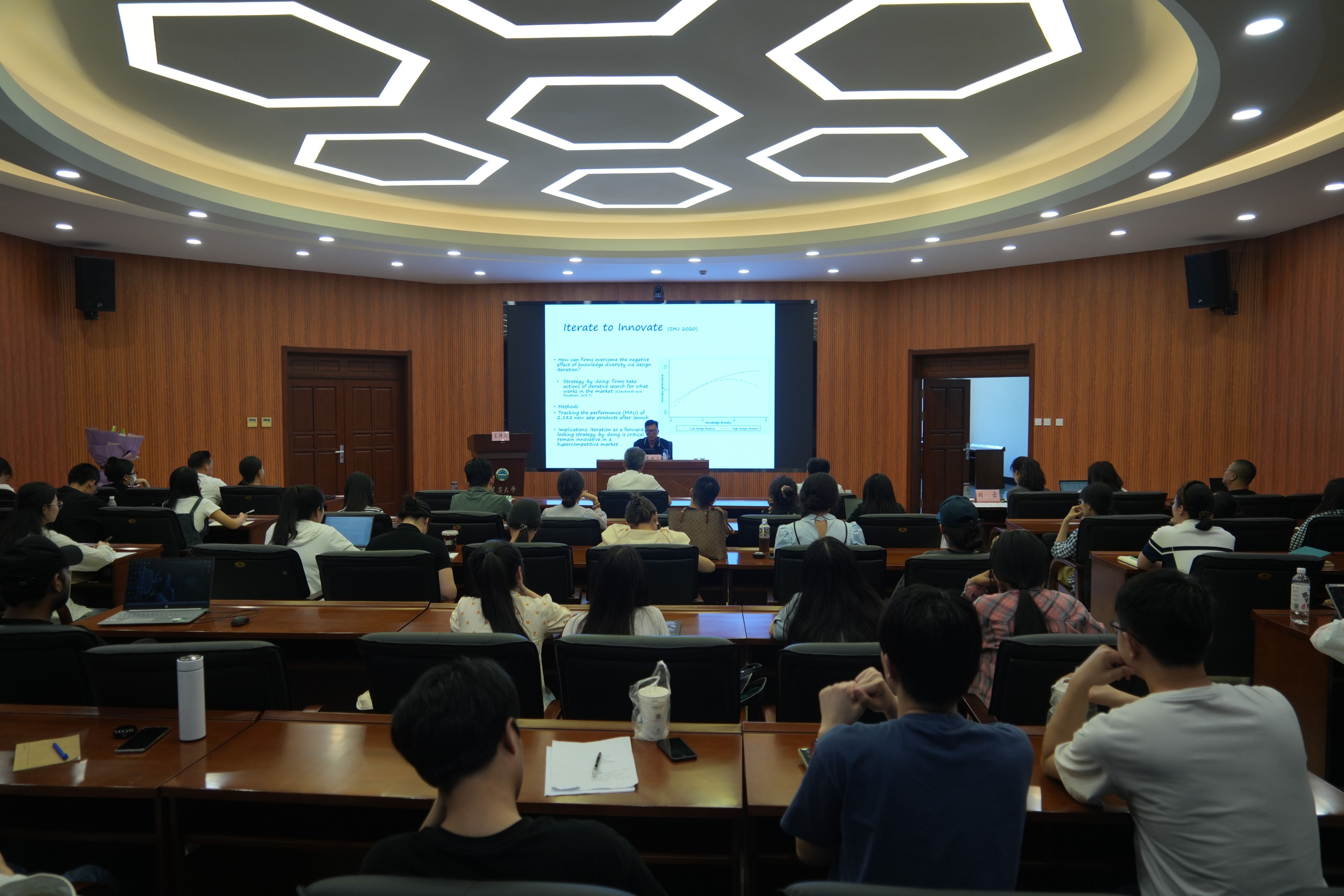 李卅立教授以Leveraging Artificial Intelligence in Platform Ecosystems: The Role of Alignment from a Complementor Perspective为题,就如何利用人工智能提升企业管理效能展开论述。李卅立教授表示,AI技术的飞速发展及其在企业管理中的应用日益广泛,为企业带来了诸多便利。然而,AI技术的应用也存在一定的挑战。同时,李卅立教授详细阐述了AI技术在市场中的应用与效果,就技术协同与时间协同的影响进行了分析。他认为,技术协同可以提高企业的创新能力和效率,而时间协同则可以优化企业的生产和运营策略。李卅立教授的讲座深入浅出,让参会人员对AI技术在各个方面的应用有了更深刻的认识,也为参会师生在实际学习、工作中的应用提供了很多有益的启示。讲座期间,李卅立教授就AI技术推广等话题与在场师生展开热烈讨论。