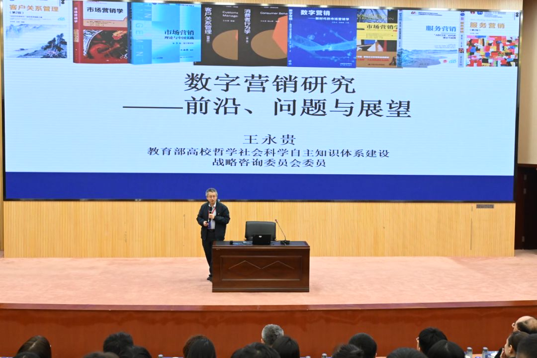 王永贵校长以“数字营销研究:前沿、问题与展望”为主题,介绍了数字营销现状以及理论研究现状,梳理出数字营销五大主题面临的主要问题,并对核心议题提出了未来的发展展望。